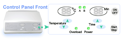 control box. The Temperature LED will display: 42°C, the Time